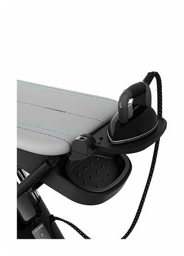Утюг имеет достаточно длинный и даже разумно гибкий кабель. Он прочно связан со станцией. Кому нравится, может использовать направляющий стержень для кабеля. Я лично гладильная дорогой без, это дело вкуса.