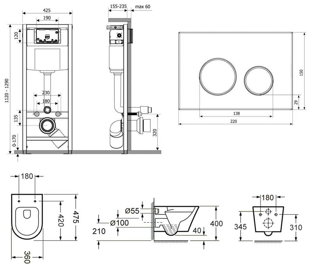 | Тип : | унитаз с инсталляцией |