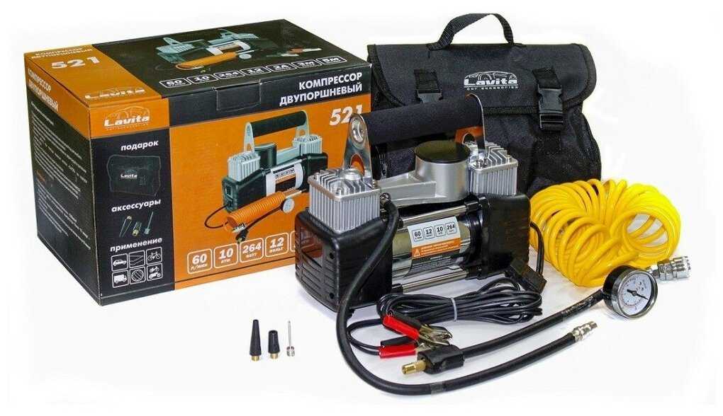 Отзывы о Компрессор LAVITA, LA 191521, 12В, 22А, 10 АТМ, 60Л/МИН. двухпоршневый (+клеммы; +сумка)