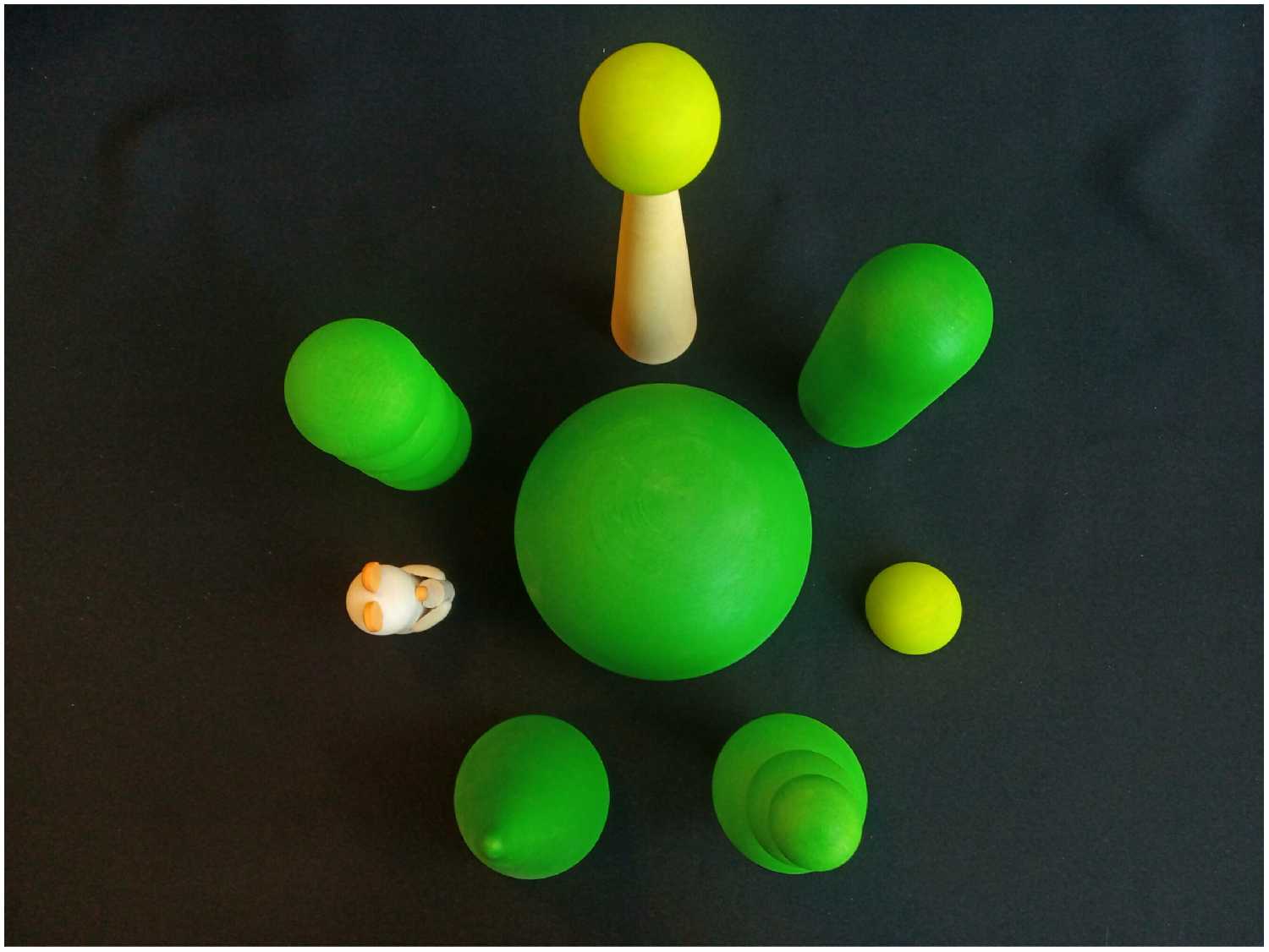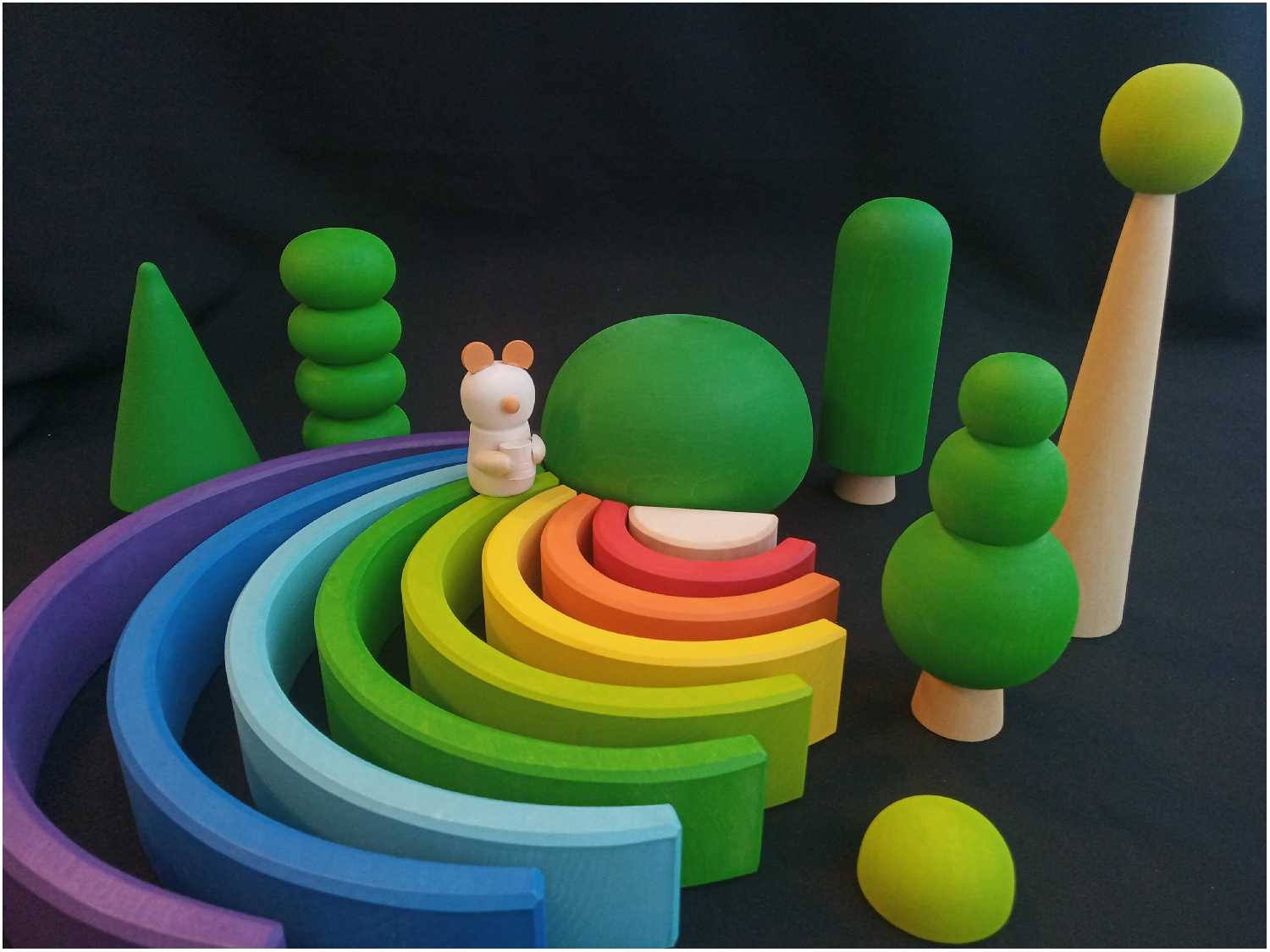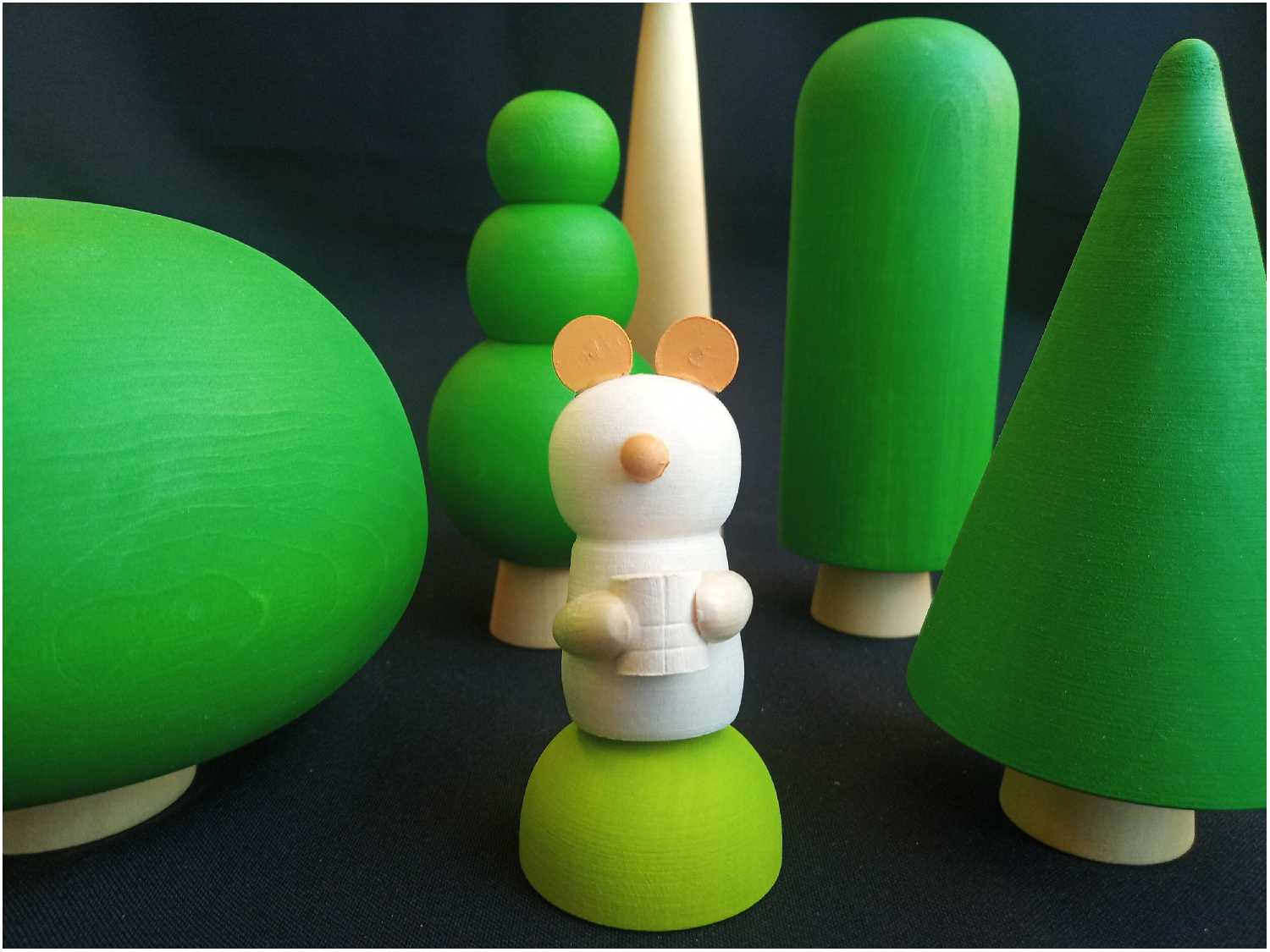 Комплектация : | 7 игрушечных деревьев разных размеров и форм и лесного жителя деревянного медвежонка |