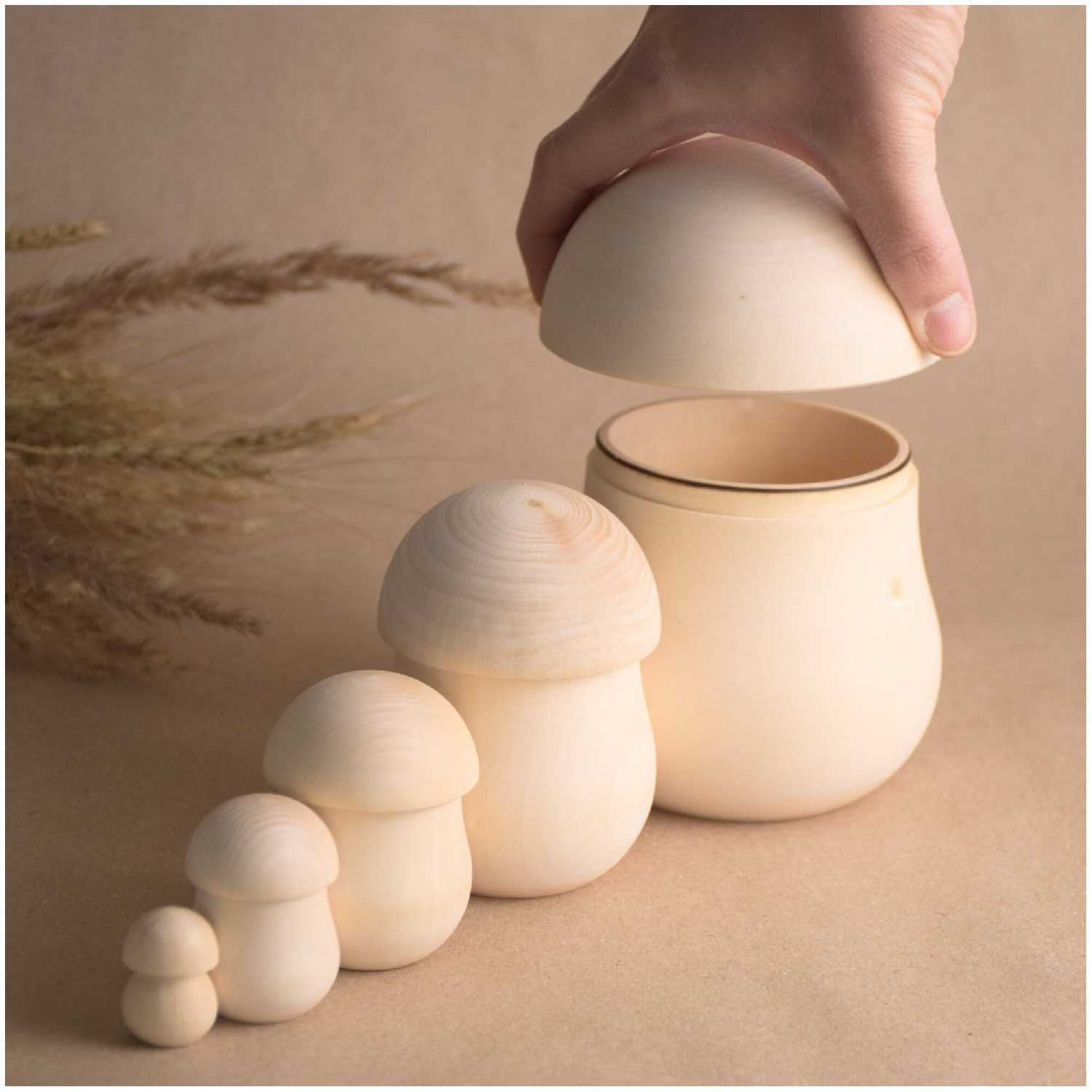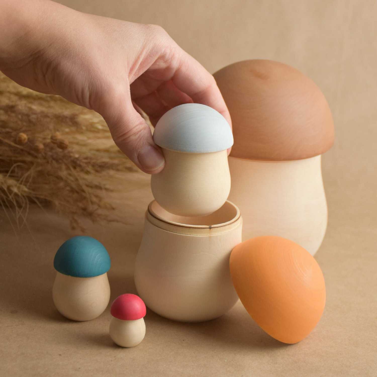 Комплектация : | деревянный сортер матрешка детская из 5 грибочков |