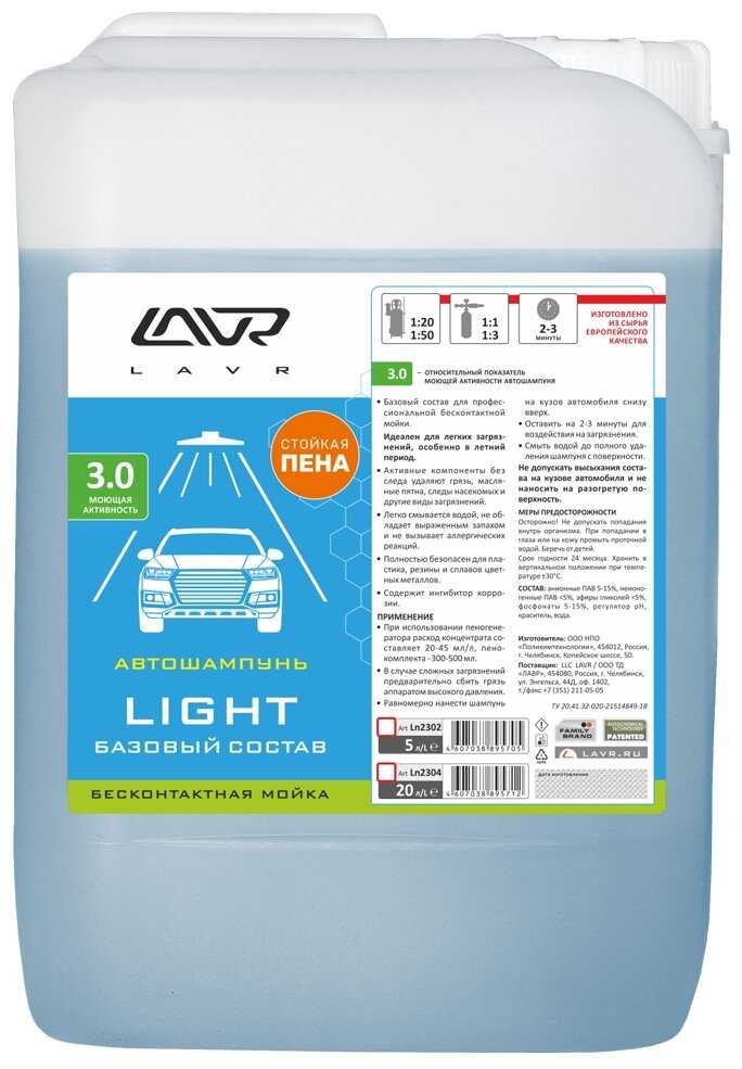 Характеристи Lavr Автошампунь для бесконтактной мойки Light базовый состав