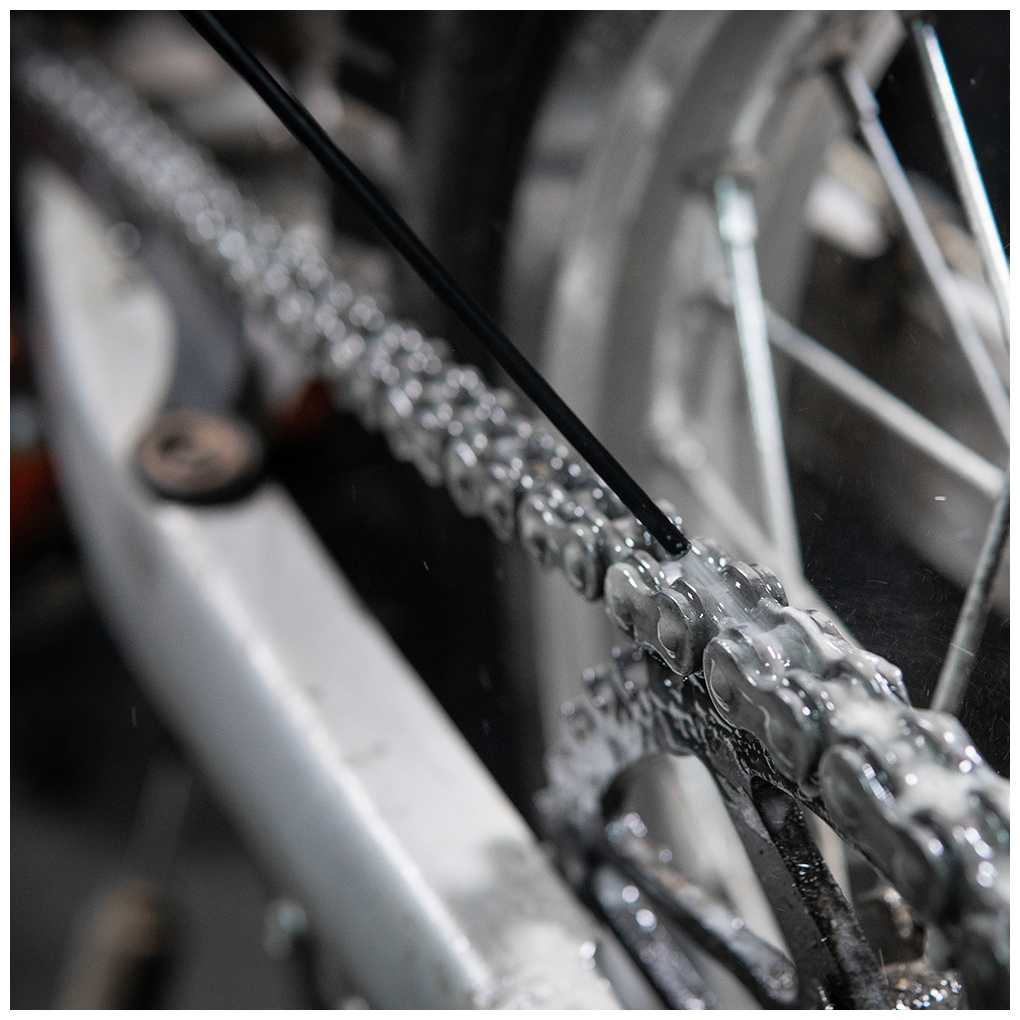 Способ применения : | Перед обработкой цепь очистить от следов старой смазки и грязи с помощью Очистителя цепи Ln7701. Тщательно встряхнуть баллон перед использованием. Нанести средство тонким слоем на внутреннюю часть цепи, медленно поворачивая колесо для максимального проникновения. Дать средству высохнуть в течение 10 — 15 минут, после чего защитные свойства достигнут максимума. После смазки протиреть цепь сухой тряпкой, чтобы удалить излишки смазки. Проводить обслуживание лучше ПОСЛЕ поездки, когда цепь прогрета. Для достижения наилучшего результата использовать при температуре баллона выше +14°C. Избегать попадания смазки на тормозные механизмы! |