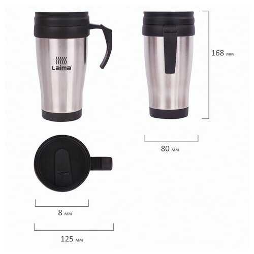 - Объём 400 мл идеален для одной порции кофе или чая, не слишком большой для ношения.