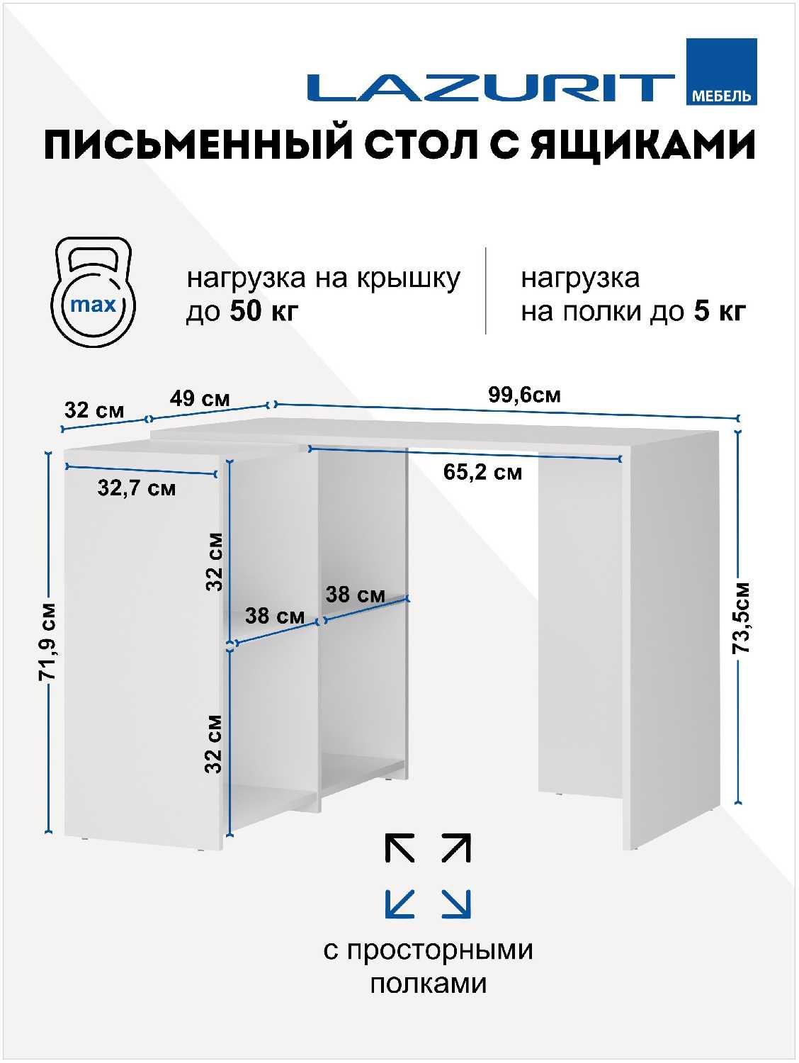 - Полки не мешают ногам, создавая свободную зону под столом для эргономики.