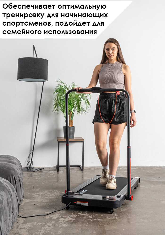 - + Довольно тихая, что силно порадовало. Не особо тяжелая, даже для дамы будет приемлимо убрать к месту хранения. Раскладывается на раз, и при этом всё таки имеет добрый поручень. Компактная, что для меня главная причина выбора. Скорость до 12 км/час, что тоже нормально для середнячка, поддержания формы и борьбы с зимней гиподинамией. Лента достаточно длинная и широкая. Соотношение цена/качество конечно тоже радует. Свои функции выполняет на "ура", я доволен. Не переусердствуйте. Бежиться легко и просто. Почувствуете через день/два)))) Разминайтесь обязательно и не спешите "в камыши". Доволен, что парни отслеживают свои товары и при необходимости советуют по эксплуатации. Можно конечно и БУ за 10 руб, но это думате сами...На фото комната 12 кв м. По высоте "на попа" 143 см.Далее фото дорожки в "припаркованном" виде и с линейкой по толщине.