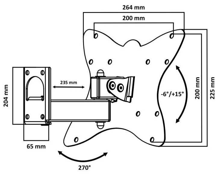 Характеристи LE'STER Кронштейн для телевизора 10"-55" наклонный-поворотный