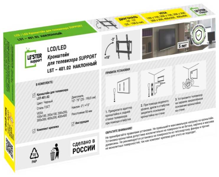 Отзывы о Кронштейн LE'STER Кронштейн на стену (LST-401.02)