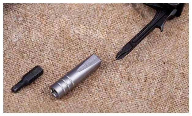 Купил для связки с Victorinox Swisschamp. Плоская отвёртка на обратной стороне ножа очень плотно входит в битодержатель. Нет ни малейшего люфта.