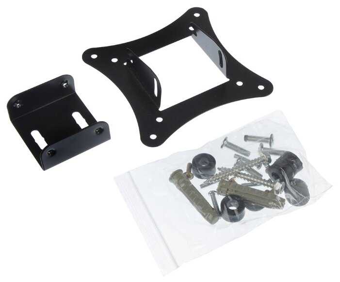 - + Отличный кронштейн для телевизора, в моем случае монитор 19 дюймов, повесил в гараже, простота установки, наличие специальных втулок, шайб, наличие нескольких вариантов болтов. Критериям для меня было вариант наклона монитора