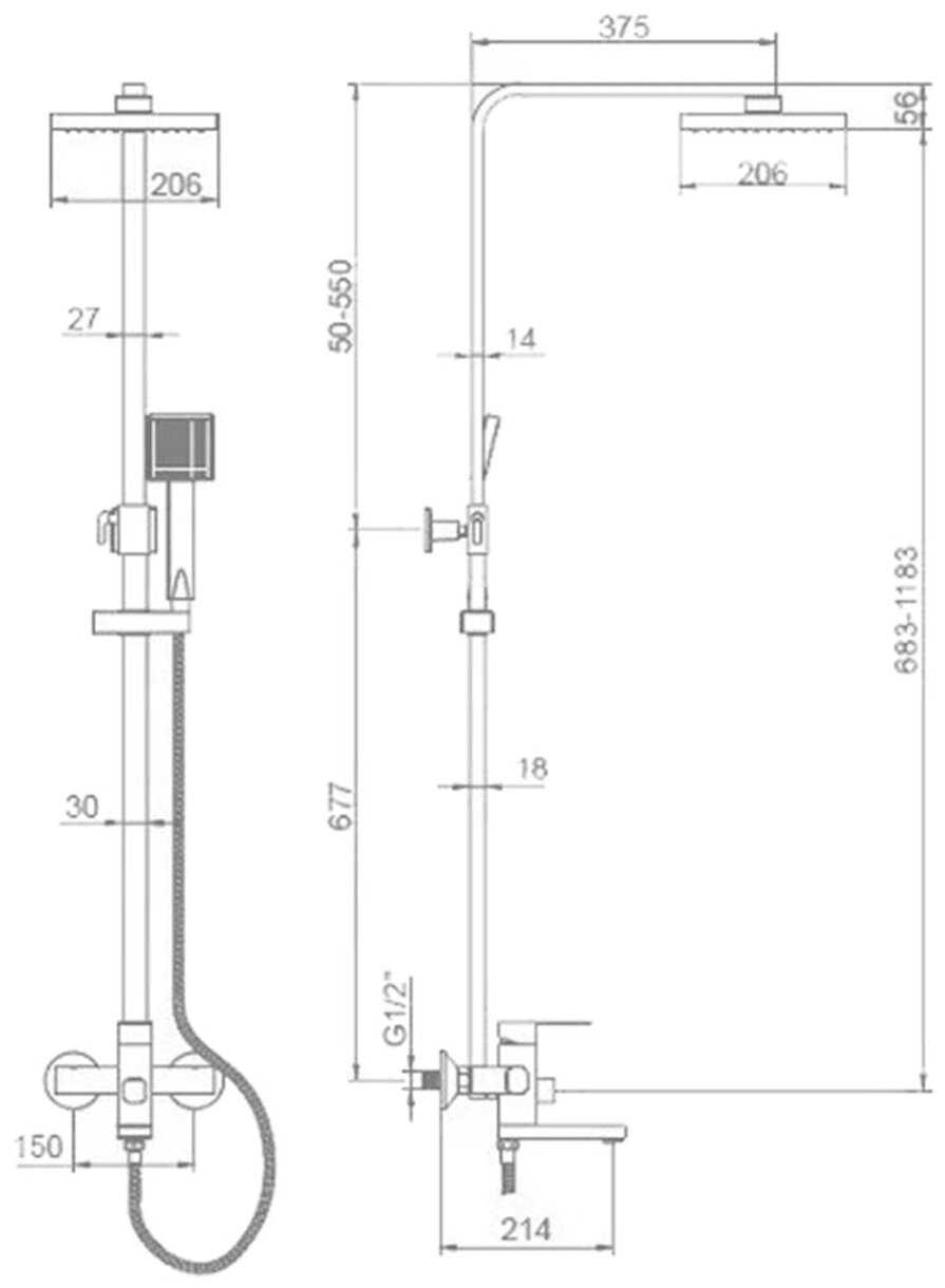 | Высота стойки для душа : | 1183 мм |