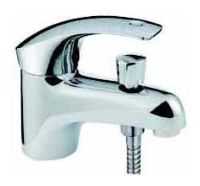 - + Неплохо выглядит, тяжелый, есть душ, поэтому подходит для установки на борт ванной.