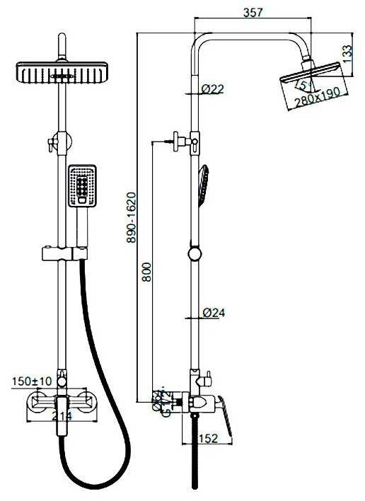 | Комплектация : | верхний душ, держатель лейки, душевая стойка, кронштейн, лейка, ручной душ, смеситель, шланг |
