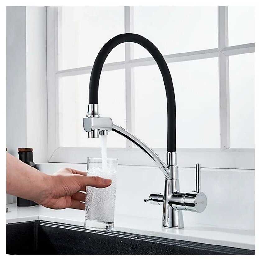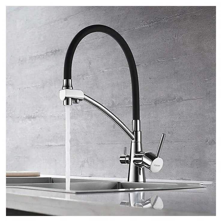 - Обычная и фильтрованная вода подаются из одного смесителя.