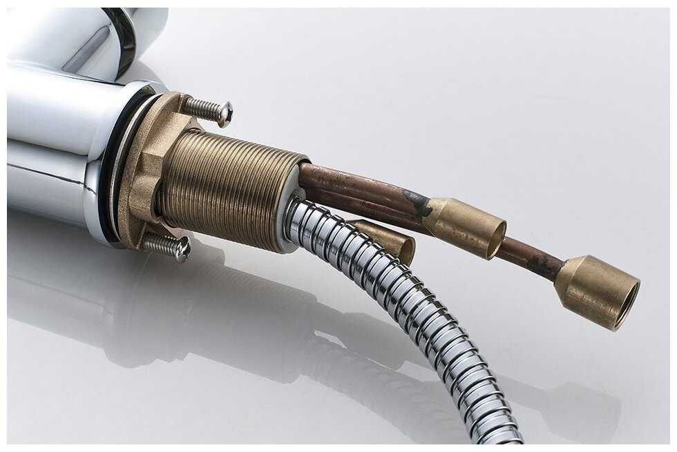 - - Подключение холодной и горячей воды не соответствуют фото товара на сайте. Вместо 3-х медных выводов для подключения, присутствует только один. Шланги холодной и горячей воды...