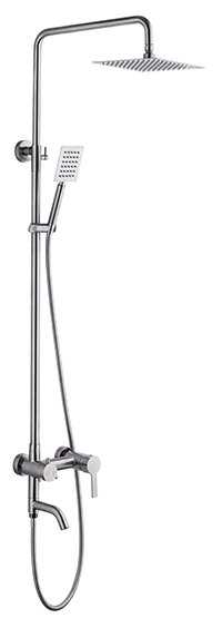 | Комплектация : | верхний душ, держатель лейки, душевая стойка, лейка, настенный держатель, отражатель, смеситель, шланг, эксцентрик |