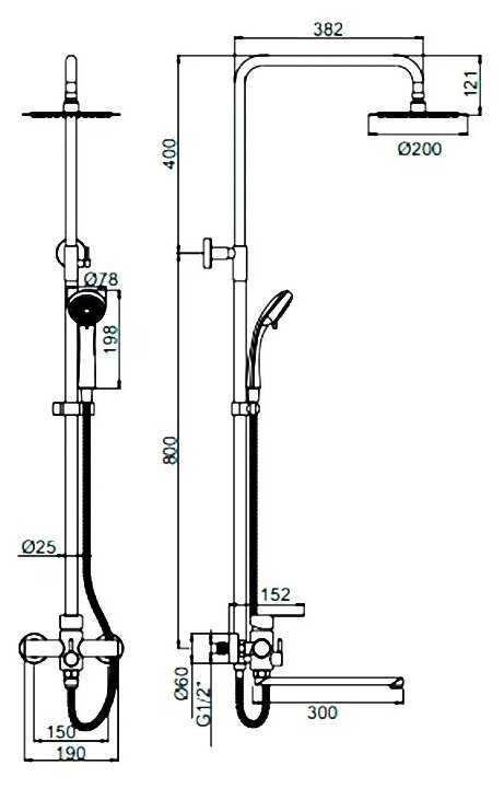 | Высота стойки для душа : | 1200 мм |