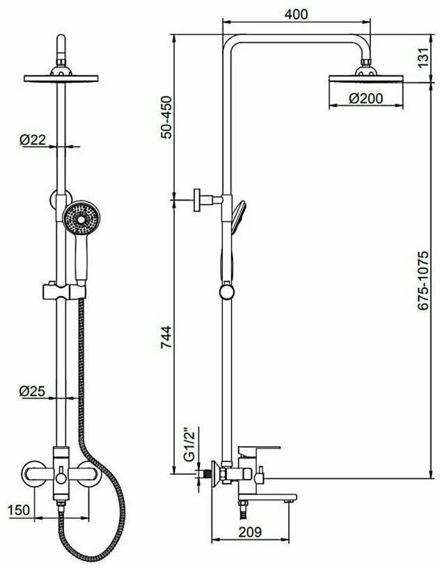 | Дополнительная информация : | высота стойки для душа: 1200 мм, диаметр верхнего душа: 200 мм |