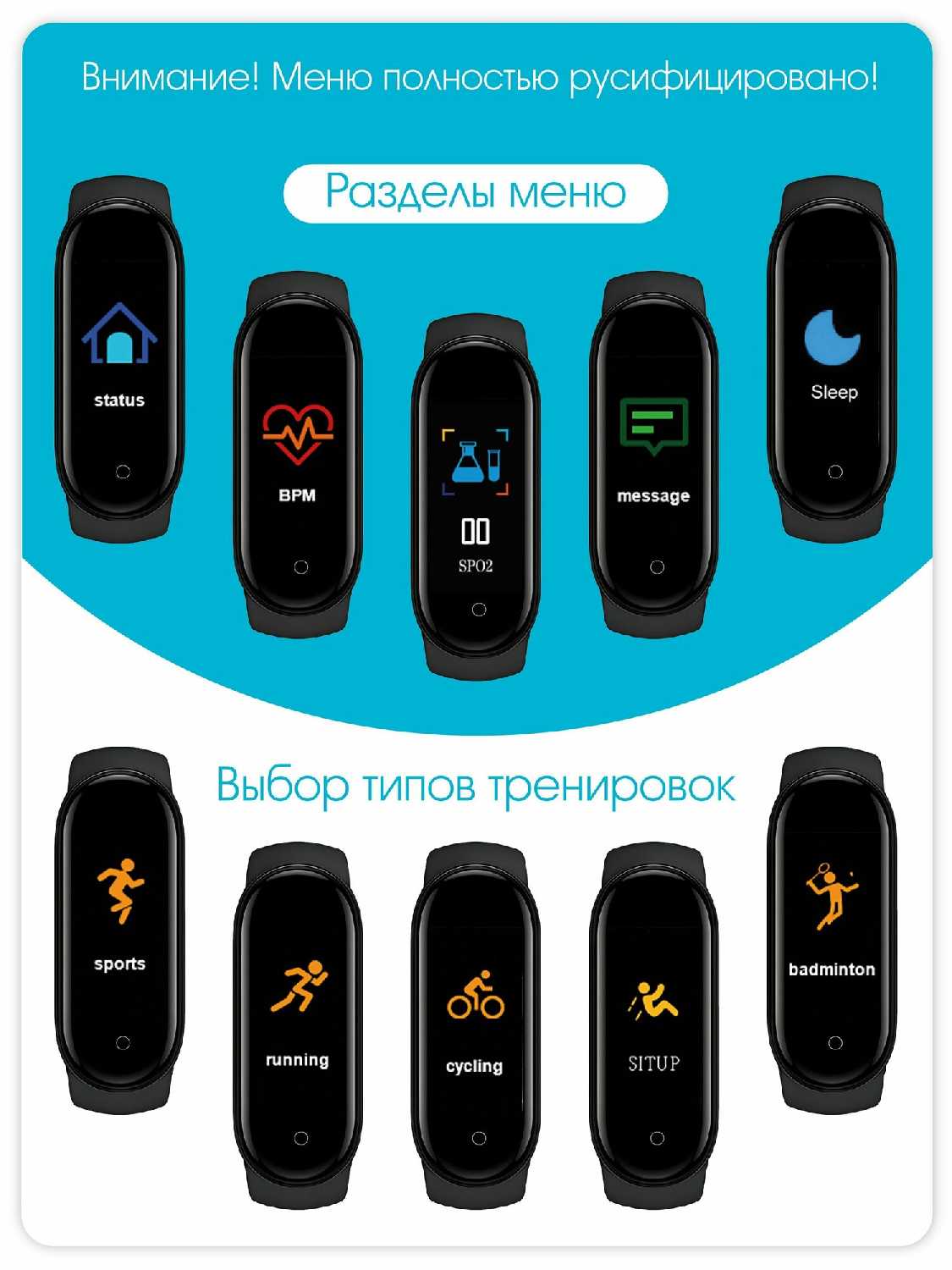 - 5 режимов тренировок (бег, ходьба, езда на велосипеде и др.) с автоматическим распознаванием активности.