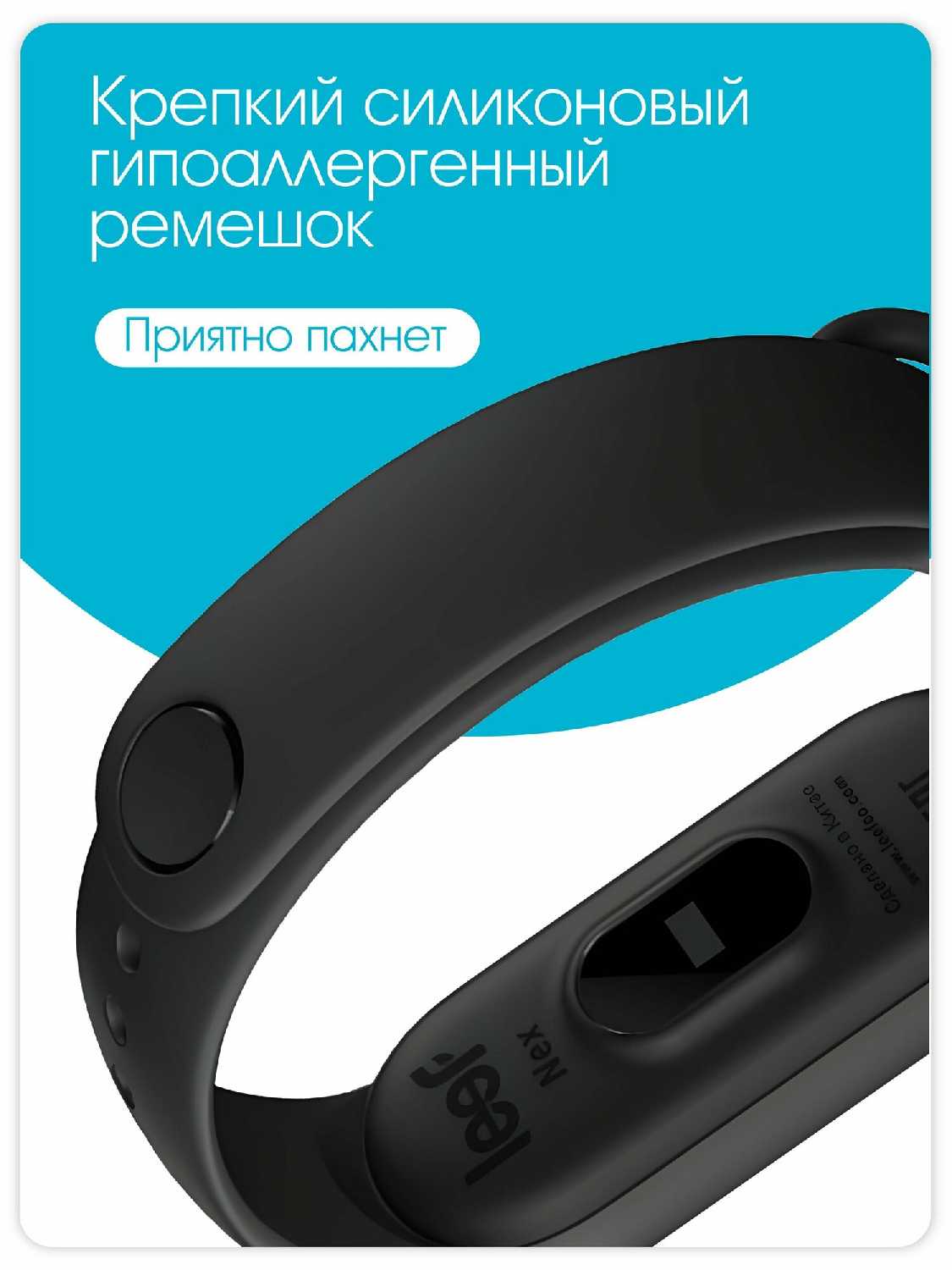 - Силиконовый ремешок с микроперфорацией предотвращает потение кожи и регулируется с шагом 5 мм.