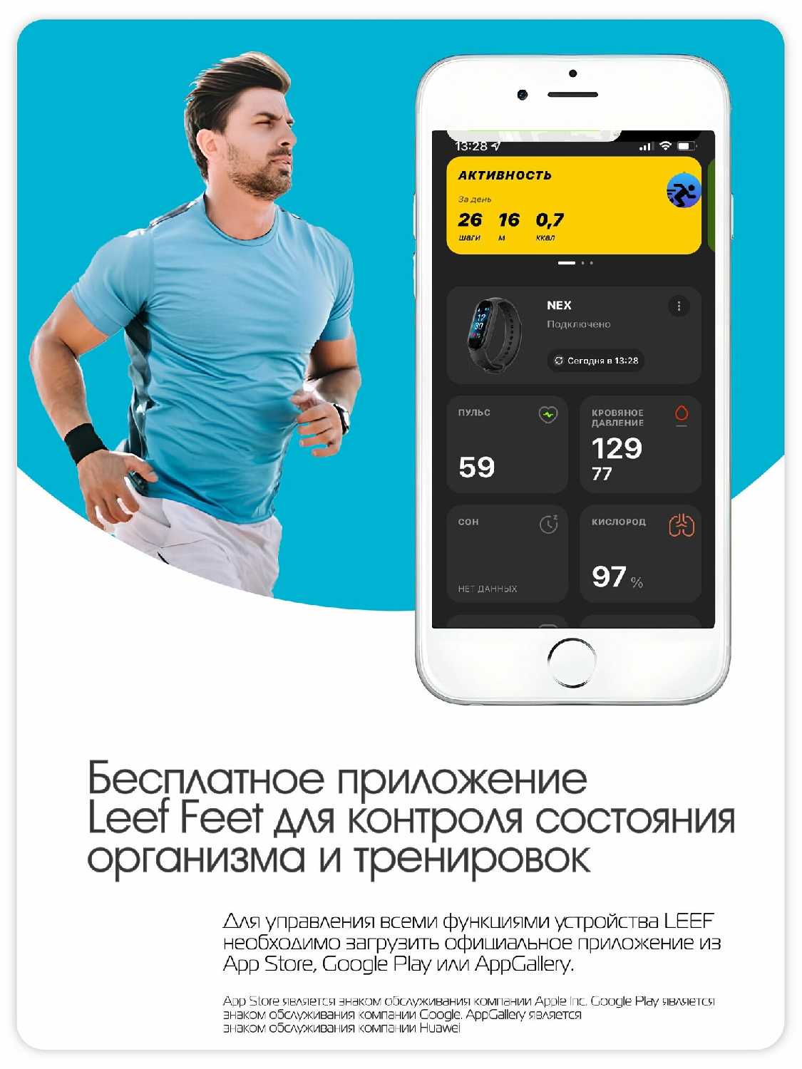 - Датчик ускорения калибруется через приложение Leef Fit, что повышает точность.