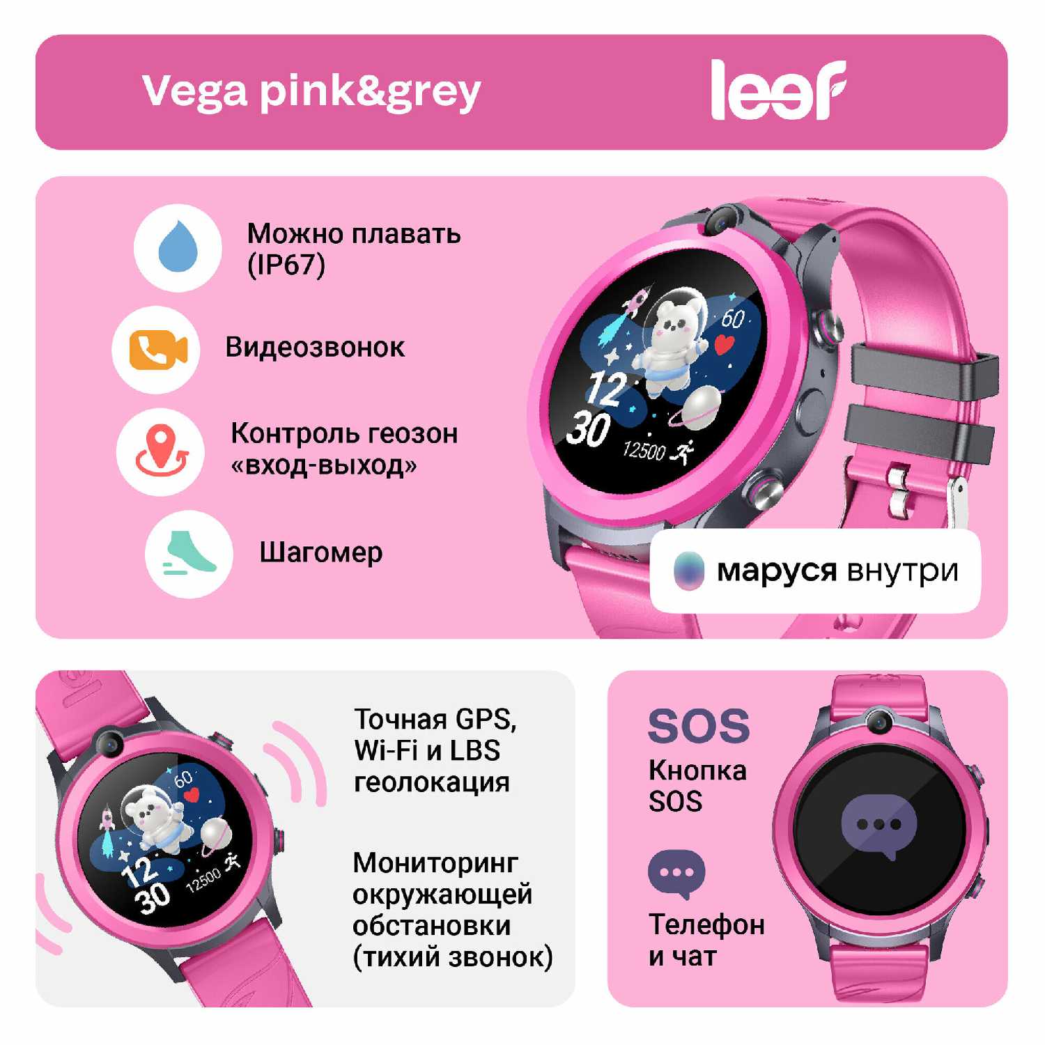 Подойдет и для младшеклассника и для подростка. Самое главное что управление тут простое, ребенок освоил легко. Перед использованием устанавливали приложение LEEF Link , после этого стало возможно отслеживать перемещение ребенка, кстати можно бабушек и дедушек подключать. Нашли удобную функцию отправки голосовых. Есть калькулятор.