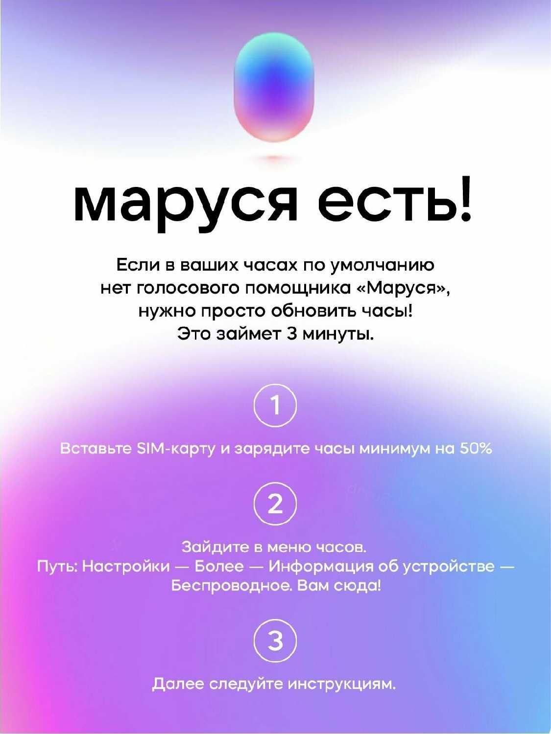 Чтобы заработала Маруся, надо было обновлять вручную через настройки на часах