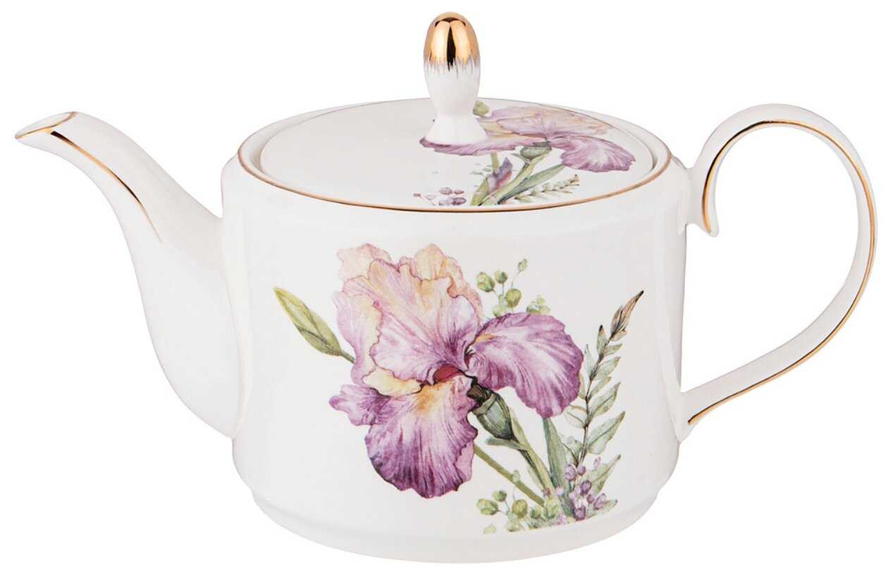 | Дополнительная информация : | Чайник фарфоровый с золотистым ободком, ручкой и изображением ирисов. Украшен золотой окантовкой. Объем 1000 мл. |