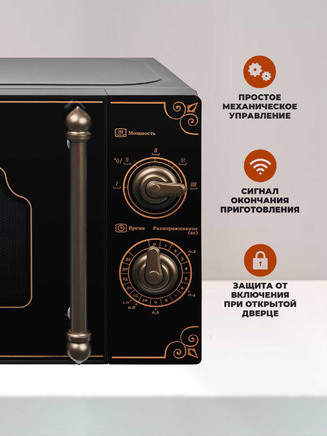 - + маленькая, для небольших столешниц самое то. очень красивая. стильная в ретро стиле. для просто разогрева идеально. выбирала больше для интерьера. очень украсила мою кухню.