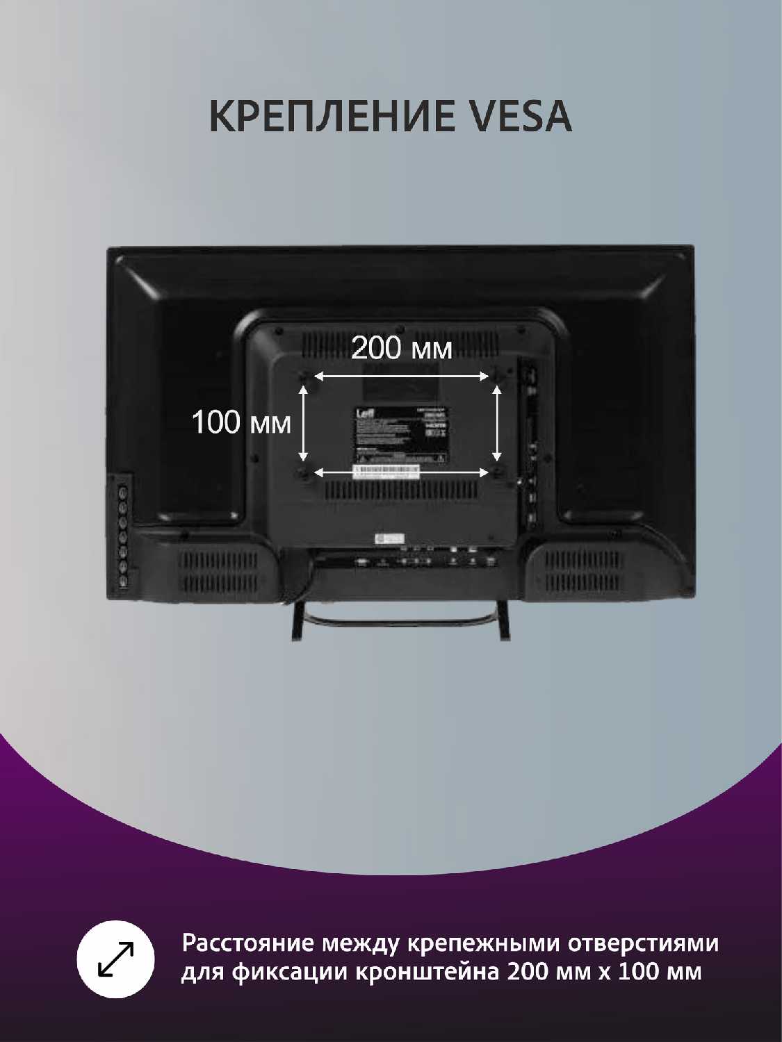 - Крепление VESA 200×100 мм (не 100×100, как ошибочно указано в описаниях) для монтажа на стену.