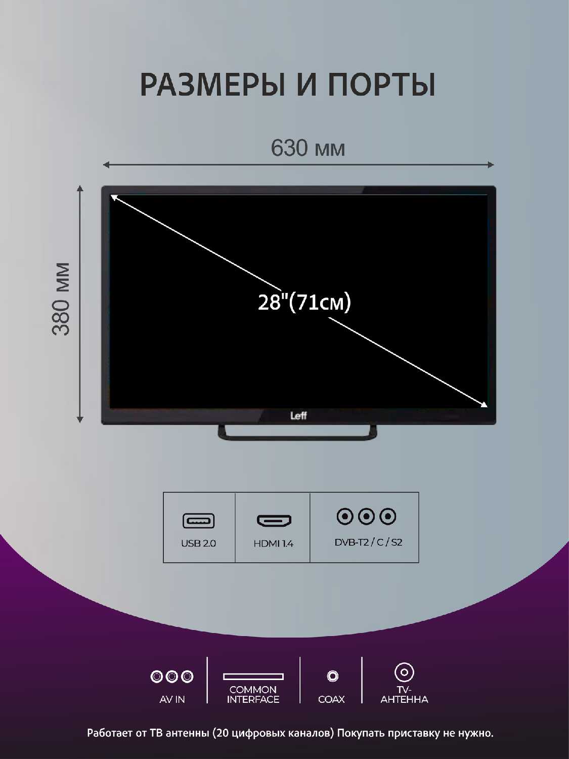 - Уникальная диагональ 28 дюймов для компактных пространств: