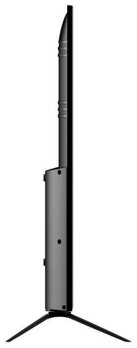 - + Небольшая цена для 4К телевизора с приличной по описанию матрицы, с хорошим, опять же по описанию, откликом (9мс), с 330 пикселями. Довольно узкая рамка, тонкий и лёгкий корпус. Удобное подключение кабелей снизу, параллельно(!) задней стенке, а не перпендикулярно, как у некоторых знаменитых производителей(Чем только они думают?)