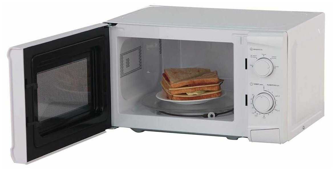 - Малые габариты позволяют устанавливать печь на узких поверхностях без потери функциональности для разогрева и разморозки.