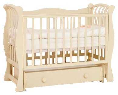 - + Натуральное дерево, много цветов, красивый изящный внешний вид. Наличие ящика радует, не даром он есть во многих кроватках.Уровень дна регулируется в 3х положениях.