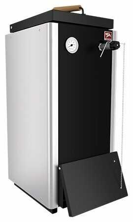 - + Работает на угле, дровах и любом твёрдом топливе. Можно подключить к системе водяного отопления с естественной циркуляцией. Сталь толщиной 4 мм гарантирует долговечность. Загрузка сверху, что в целом удобнее, сразу высыпаешь всё и равномерно, возможно в этом дополнительный секрет экономичности.