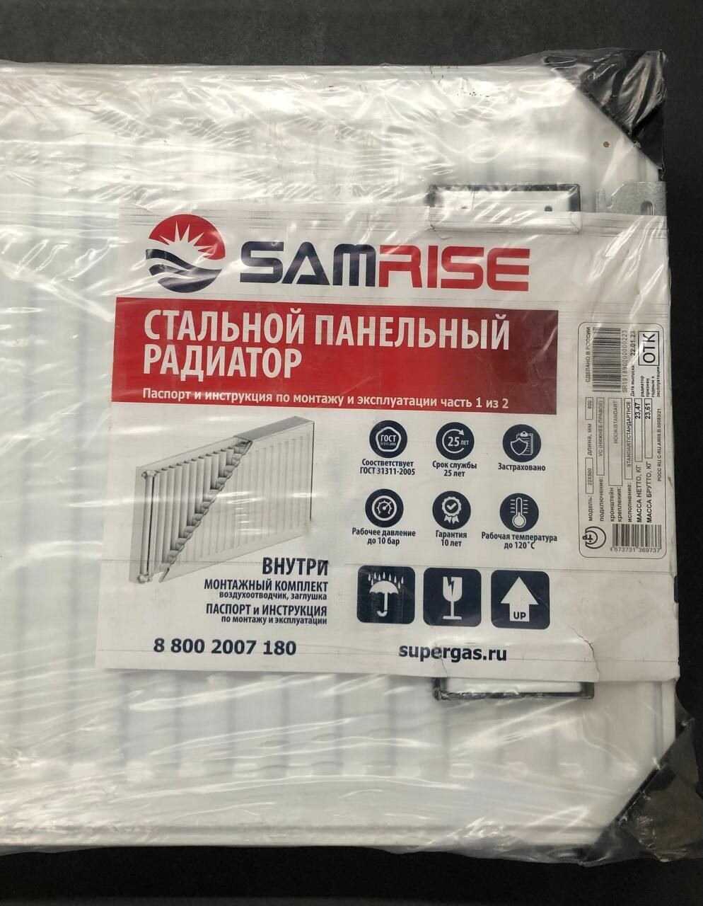 | Подробная комплектация : | - радиатор - 1 шт - кран Маевского - 1 шт - пробка глухая - 2 шт - встраиваемый клапан Danfoss RA-N 013G1382 - паспорт (гарантийный талон) |