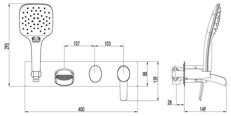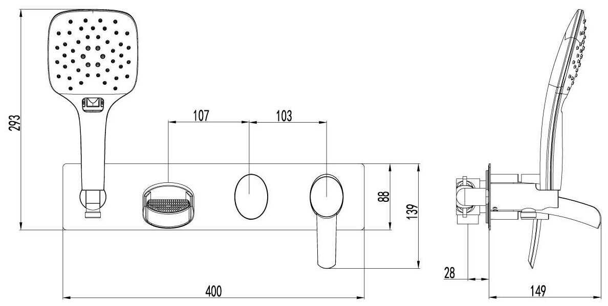 | Комплектация : | держатель лейки, излив для набора воды, лейка, смеситель, шланг |