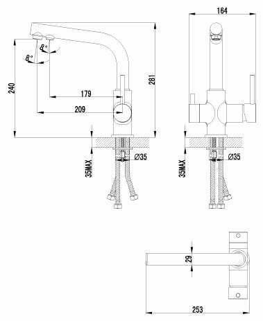 - Упрощает установку в ограниченном пространстве, адаптируясь к расположению мойки и предотвращая неудобства.