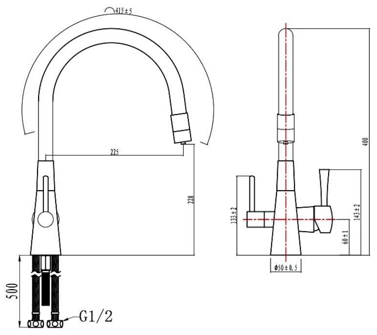 - Резиновая основа излива обеспечивает «память положения» — после сгибания он сохраняет заданную форму, не провисая.