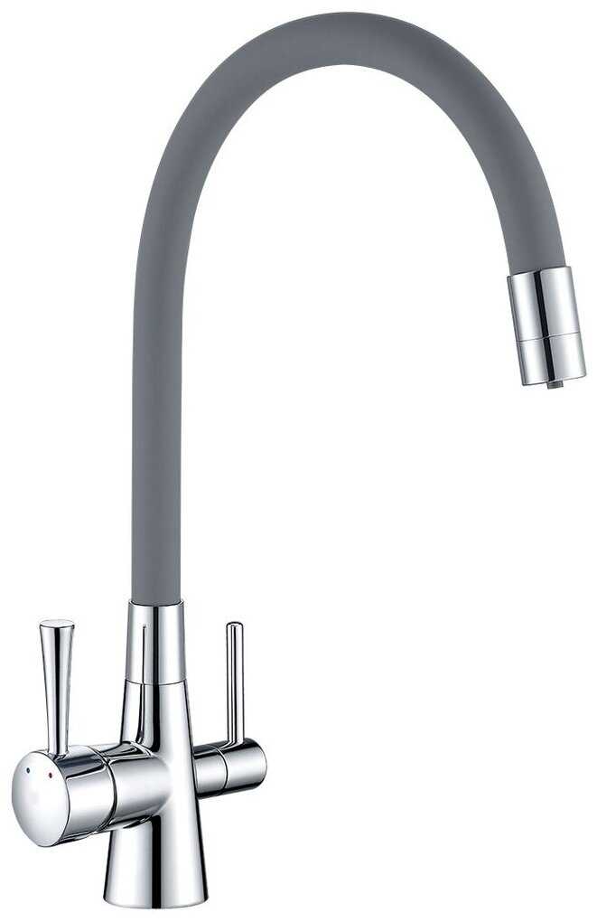 Нам нужен был смеситель, имеющий функцию переключения на фильтрованную воду. Причем хотелось бы, чтобы это было реализовано через один кран, потому что установка двух скрадывает место на кухне, которое и так очень жалко. И мы подобрали вот такой. Во-первых, он по оттенку подходил на кухню, во-вторых, у него еще и излив гибкий, что тоже очень хотелось бы. В использовании крайне удобен: можно повернуть кран в любую сторону, опустить пониже, приподнять повыше, и все это с легкостью, кран при этом не деформируется и возвращается в исходное положение. Переключение на чистую воду реализовано посредством рычага, главное не путаться, какой рыча за что отвечает, но это просто требует привычки. А так качественный и стильный на внешний вид.