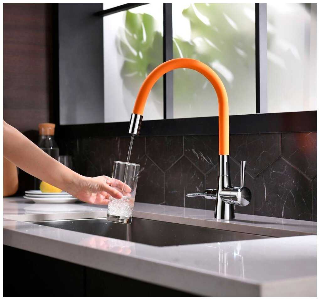 пользуюсь второй день. смеситель, как смеситель. пока придраться не к чему. выглядит стильно. гибкий - можно согнуть под другим углом. фильтр пока ещё не подключала - заглушку для фильтровой трубки стандартную не нашли, вырезали из прокладочный резинки, вставили и все ок