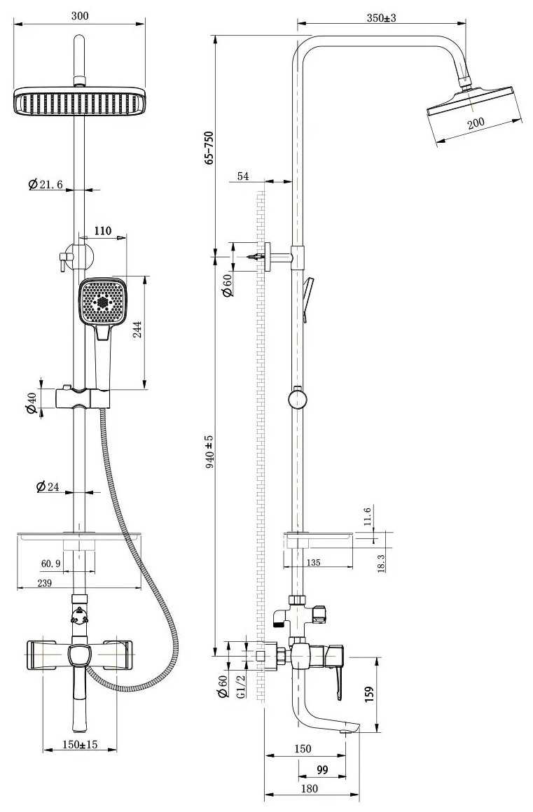 - + Высокая стойка тропического душа, лёгкий в сборке,латунные эксцентрики