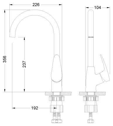 - Смотрится гармонично в кухне и маленькой ванне, обтекаемая форма.