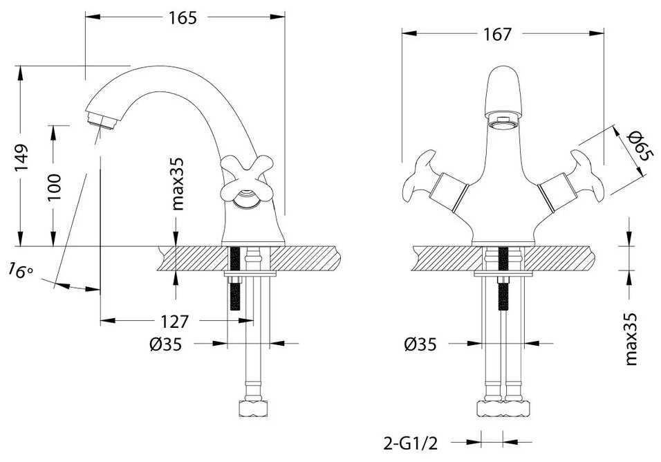- кран-буксами с керамическими пластинами и металлическими рукоятками