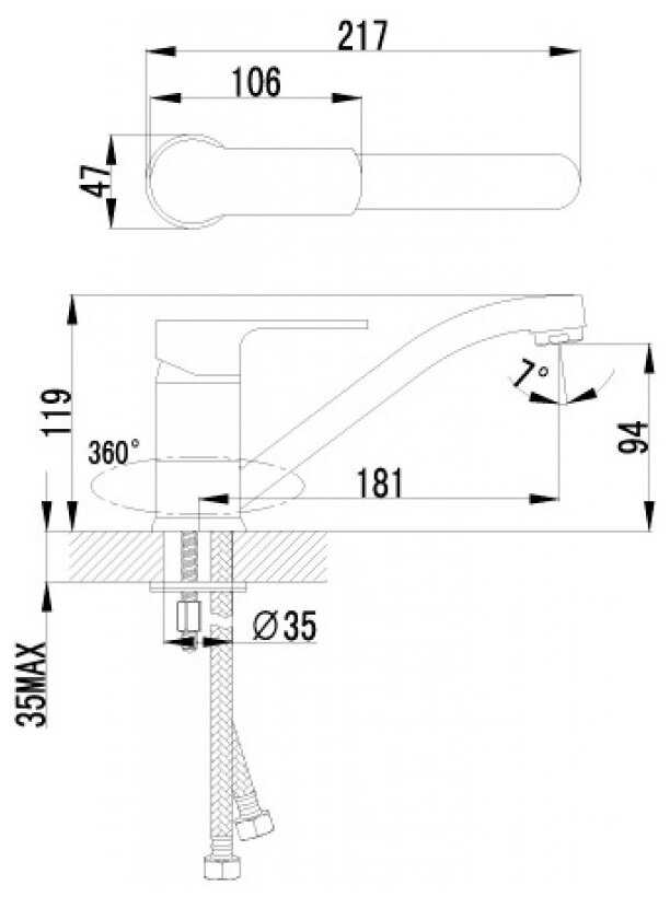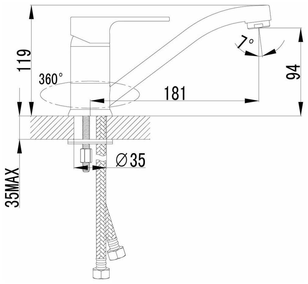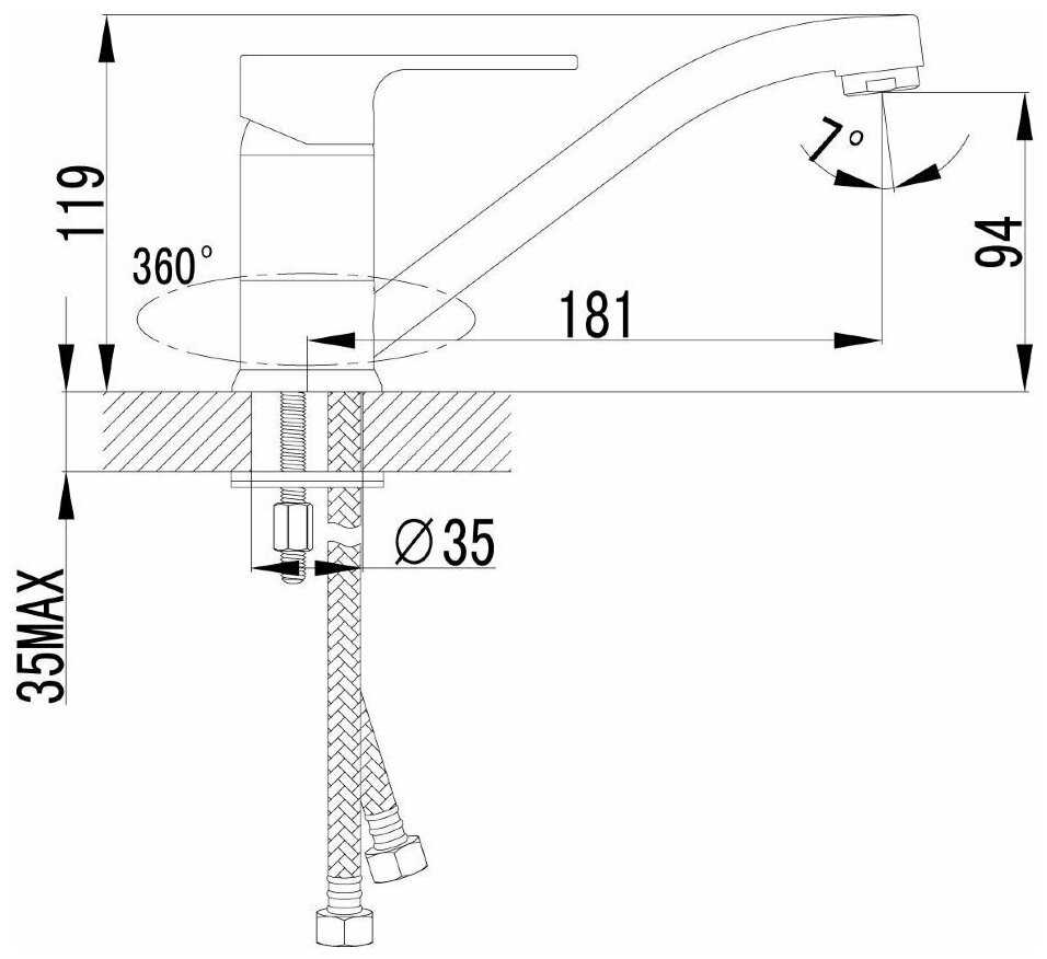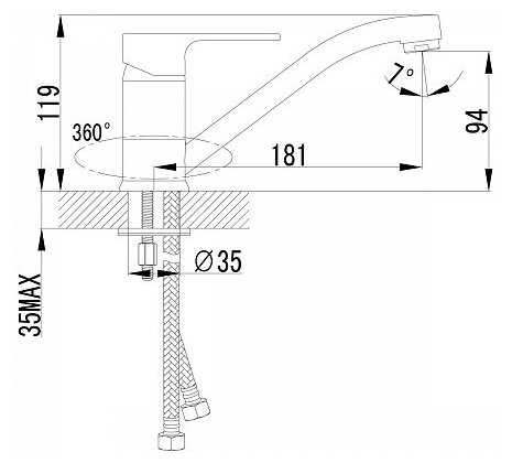 Для меня оптимальная высота и длина излива, т. к. привык умываться, повернув его в угол прямоугольной раковины. - - Скорее, особенность -комплектная гибкая подводка 30 см коротковата оказалась для меня, раньше было на 50). Пришлось докупить.