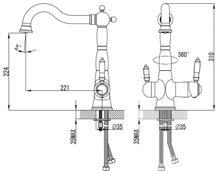 - + Покупкой доволен. Монтаж крана прост: в инструкции всё объяснили и в комплекте все детали для крепежа имелись, ничего докупать не надо. Служит этот кран на кухне более года. Выглядит он традиционно, уютно по-деревенски. Нареканий к качеству аэрации воды, работе буксы нет. Кран установил без предварительного подключения к центральному фильтру - налёта от жёсткой воды на горизонтальных поверхностях нет.