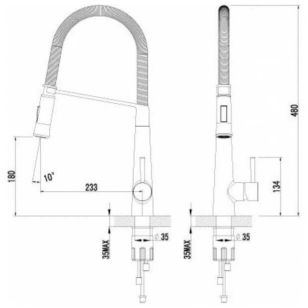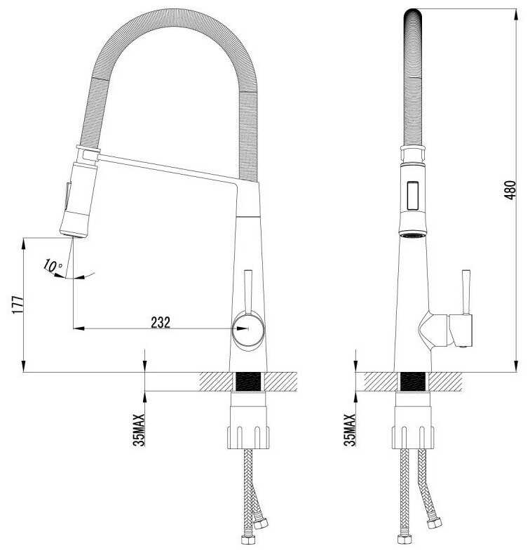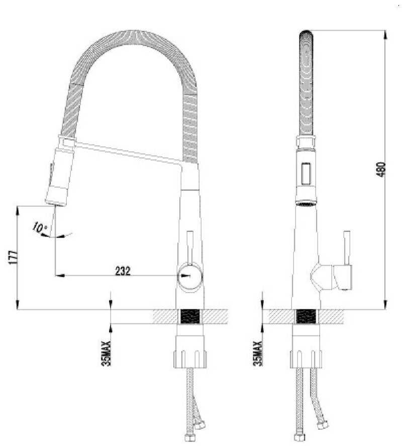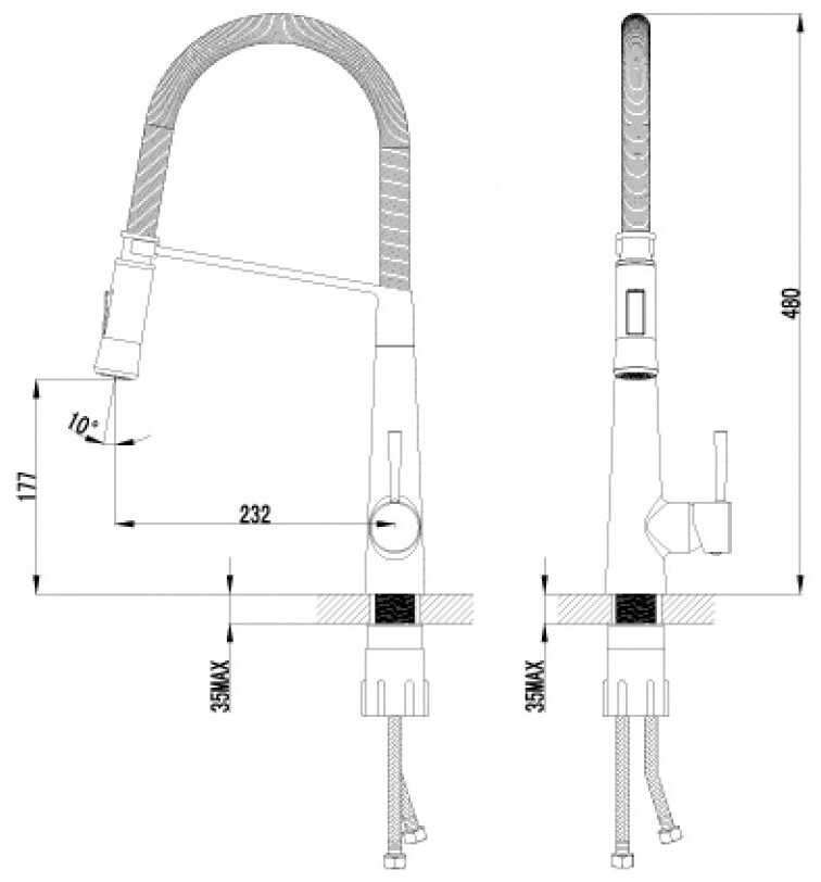 - + гибкий шланг, возможность переключения режимов, высокий кухонный кран