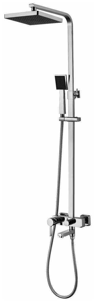 | Комплектация : | верхний душ, держатель лейки, душевая стойка, излив для набора воды, лейка, ручной душ, смеситель, шланг |