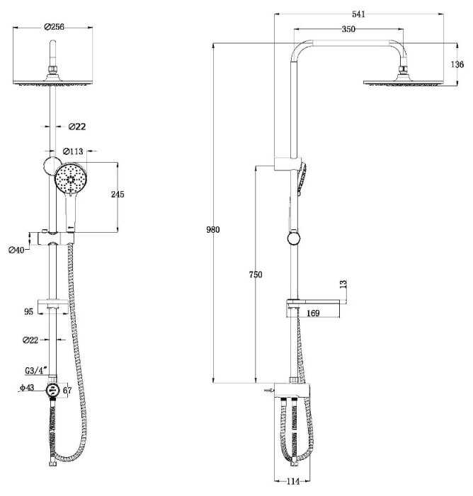 | Высота стойки для душа : | 980 мм |