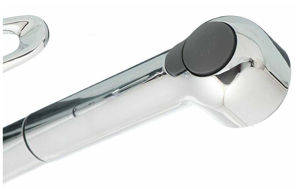 Стильный и удобный смеситель для кухни. Интересно сделана лейка, посуду мыть очень комфортно.